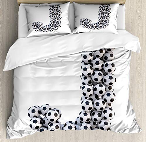 70% Off Everything Ambesonne Letter J Duvet Cover Set, Soccer Balls in The Form of a Letter Futboll Alphabet Theme Teamplay Sports, Decorative 3 Piece Bedding Set with 2 Pillow Shams, Queen Size, Black and White